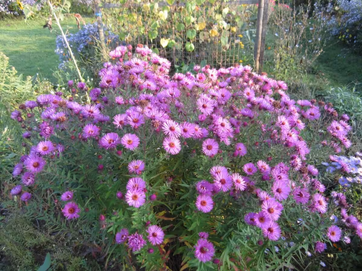 Bei den hohen Sorten habe ich persönlich Glattblattastern und Raublattastern. Die erstgenannten sind leider ein wenig anfällig für Mehltau, wenn der Standort nicht luftig genug ist. Auf den rauen Blättern der Raublattastern findet der Pilz nicht so schnell Halt, daher ist in gefährdeten Gärten mit engem, wenig luftigem Bewuchs die Raublattaster die bessere Wahl.