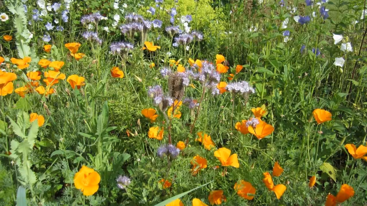 Goldmohn samt sich besonders stark aus, daher musst Du ein Auge auf ihn haben. Zumal er auch im Frühjahr einer der ersten ist, die ins Rennen um die sonnigsten Plätze starten. Er ist definitiv ein gute- Laune-Garant, die gelb/orangen Farbtöne leuchten mit der Sonne um die Wette. Sogar zu Rosen passt er gut, ich habe ihn z.B. neben einer gelb-orangen Englischen Rose stehen, das sieht super aus. Daneben lila-blauer Rittersporn, ein ganz toller Kontrast.