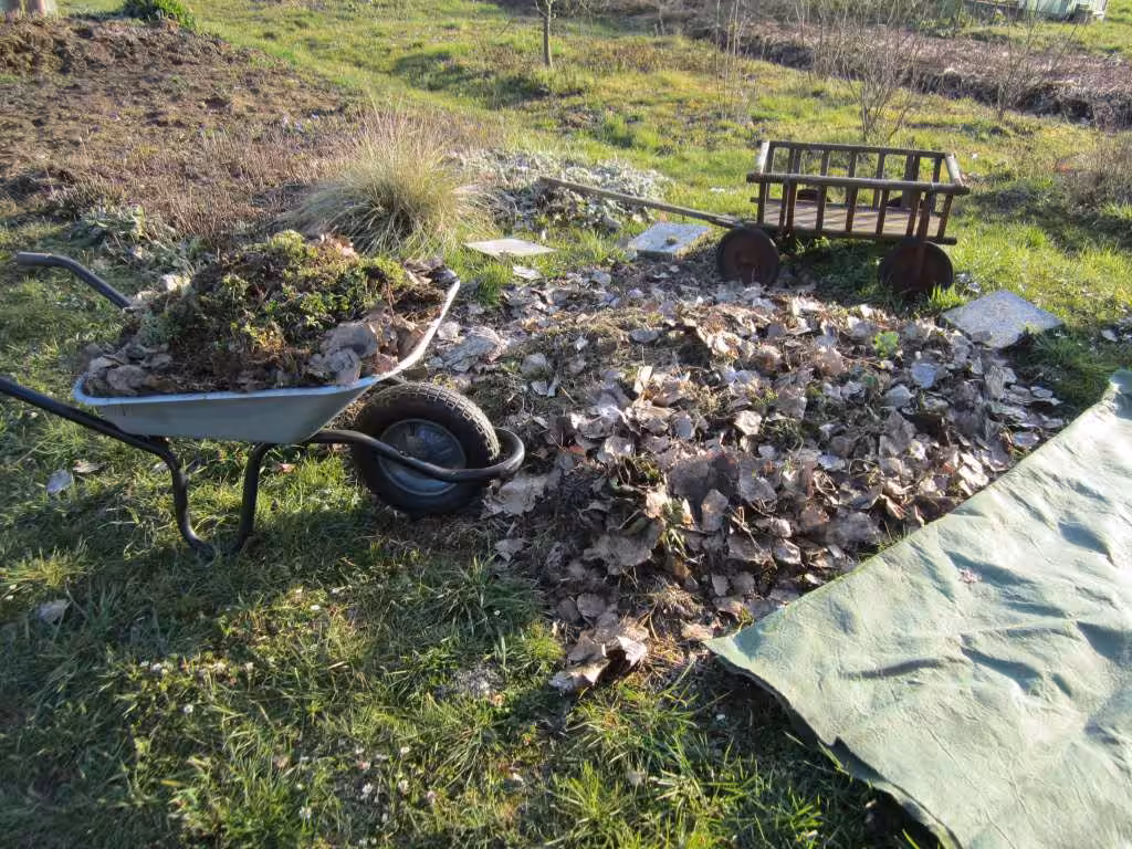 Das Abräumen der Winterbedeckung mit anschließendem Aufsetzen des neuen Kompostes