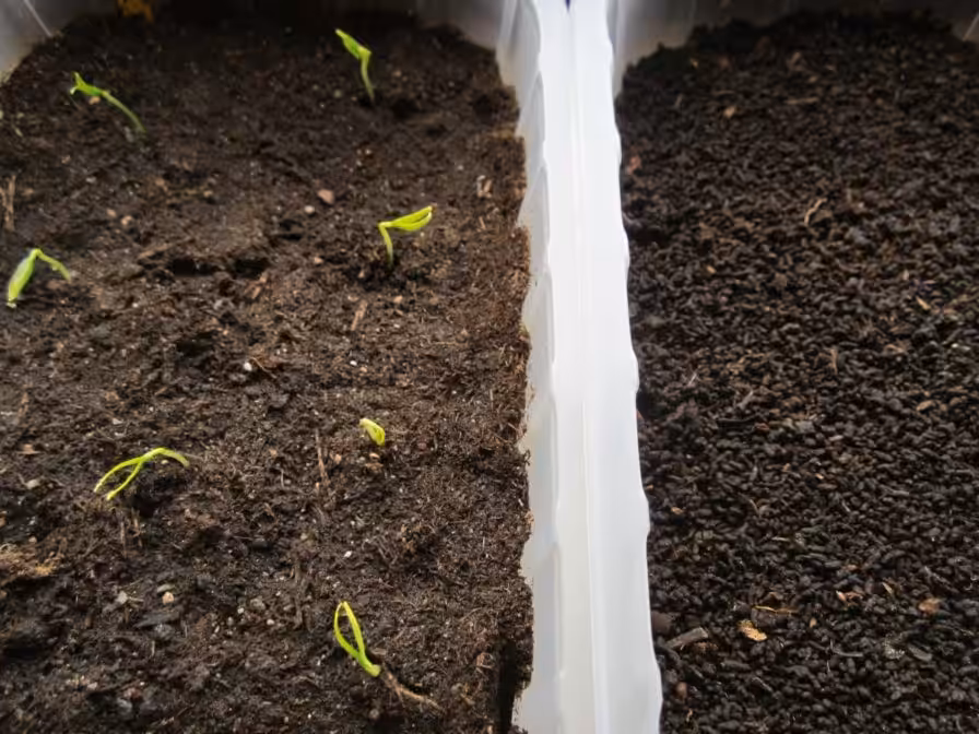 Auf dem letzten Foto kannst Du den Unterschied zu meiner gekauften Bio Aussaaterde gut erkennen. Links die im Video erwähnten Paprika-Keimlinge, rechts der Wurmhumus.